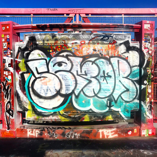 Williamsburg Bridge, New York City; #williamsburgBridge #streetart #graffiti #Williamsburg #NYC #TagsAndThrows