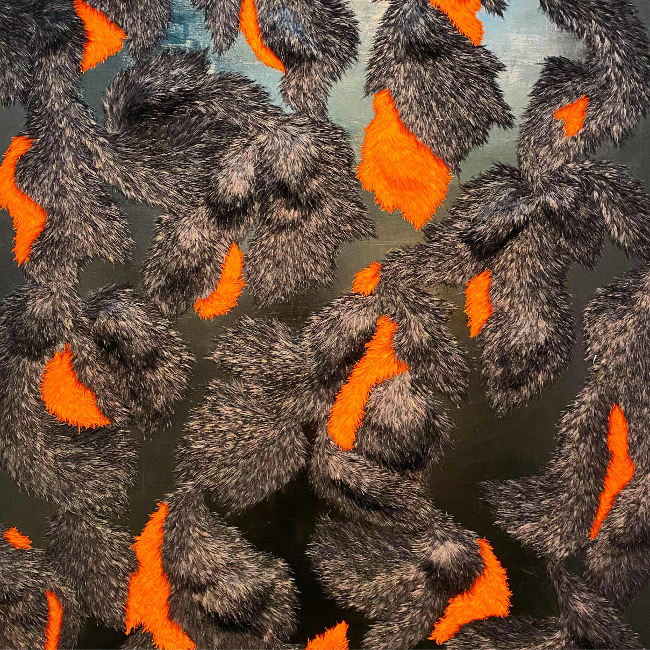 possibilities in materials and space. The artist cuts and restructures paper, presenting furry textures.