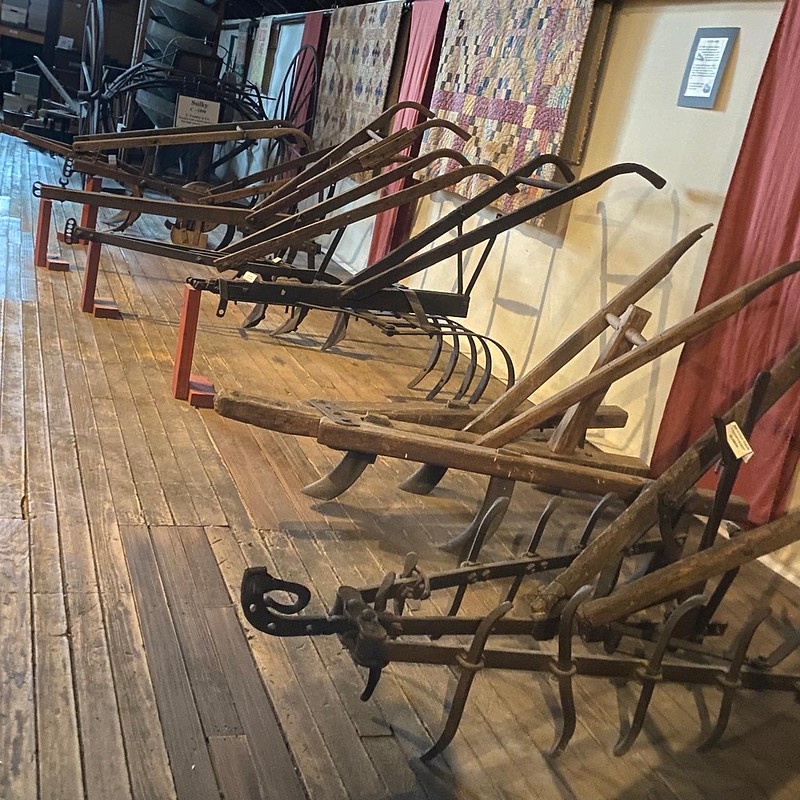 Here, they stashed the gear they have not gotten around to fully displaying or even figuring out what to do yet, a bric-a-brac of primitive, discarded agtech. The showcases of plows and cultivators alone are worth the climb.